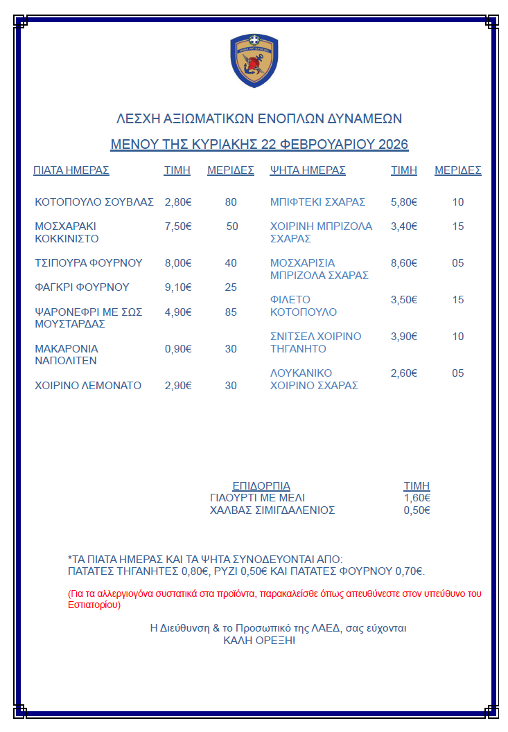 ΜΕΝΟΥ ΗΜΕΡΑΣ
