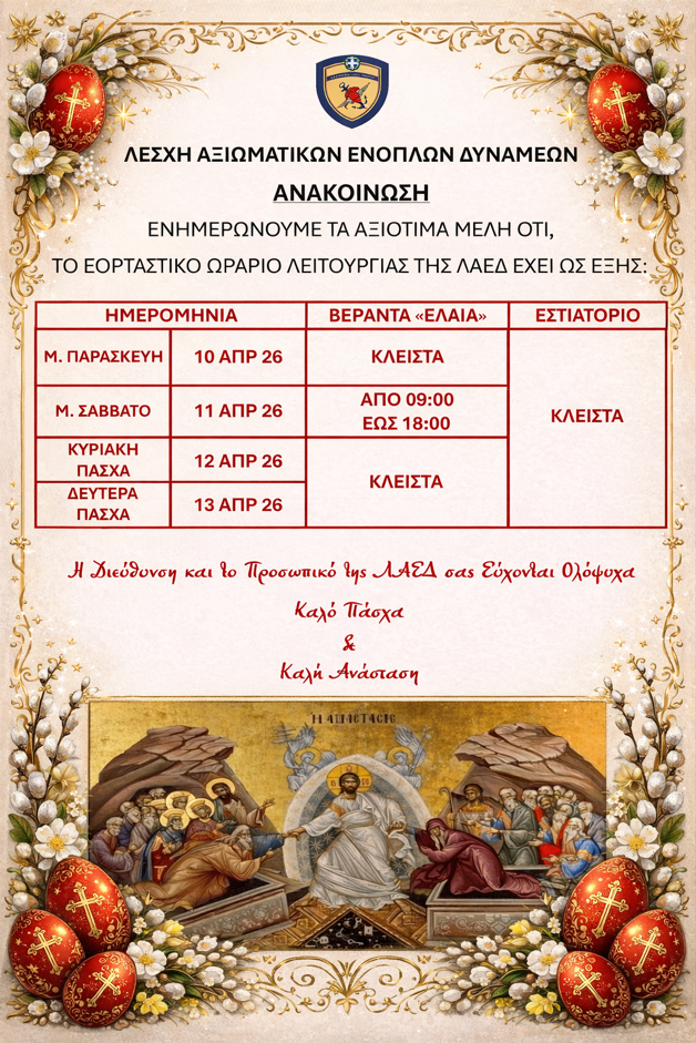 ΑΝΑΚΟΙΝΩΣΗ ΛΑΕΔ ΓΙΑ ΧΟΡΟΕΣΠΕΡΙΔΑ Ανακοινώσεις … Περισσότερα ΑΝΑΚΟΙΝΩΣΗ ΛΑΕΔ ΓΙΑ ΧΟΡΟΕΣΠΕΡΙΔΑ Read More »